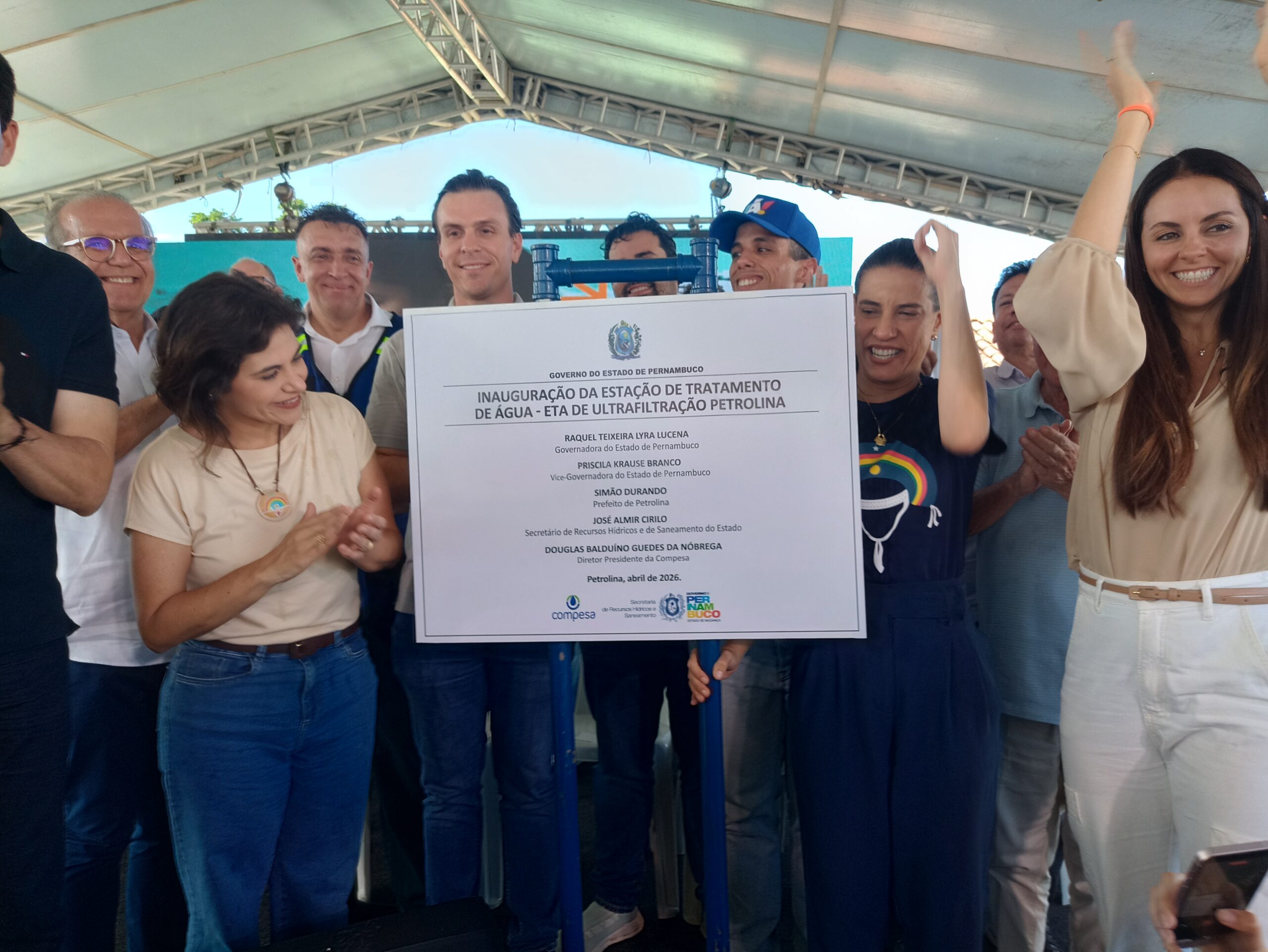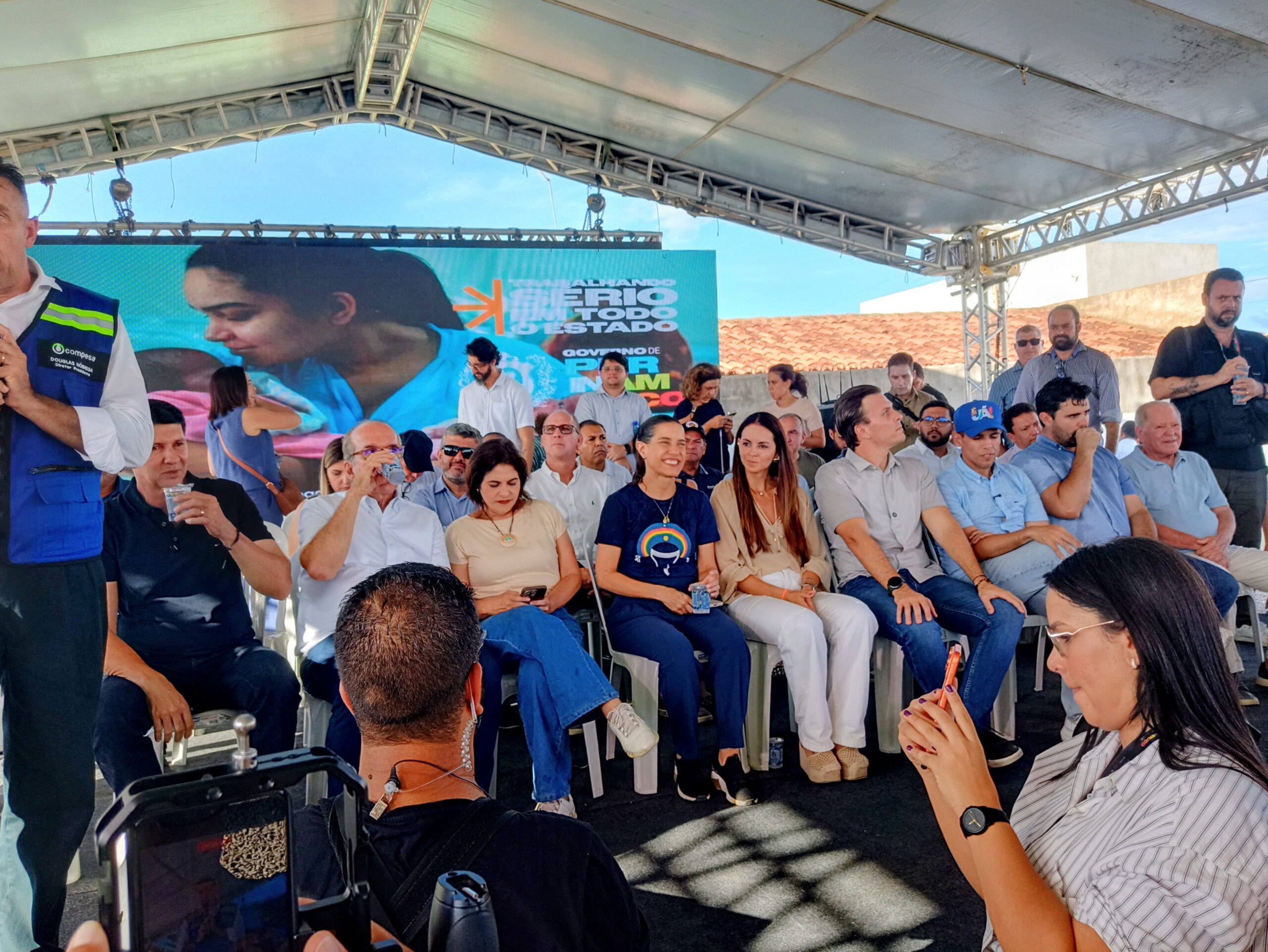 A solenidade contou com a presença da governadora Raquel Lyra e da vice-governadora Priscila Krause, além do presidente da Compesa, Douglas Nóbrega. Também participaram o senador Fernando Dueire e o deputado estadual Jarbas Filho.